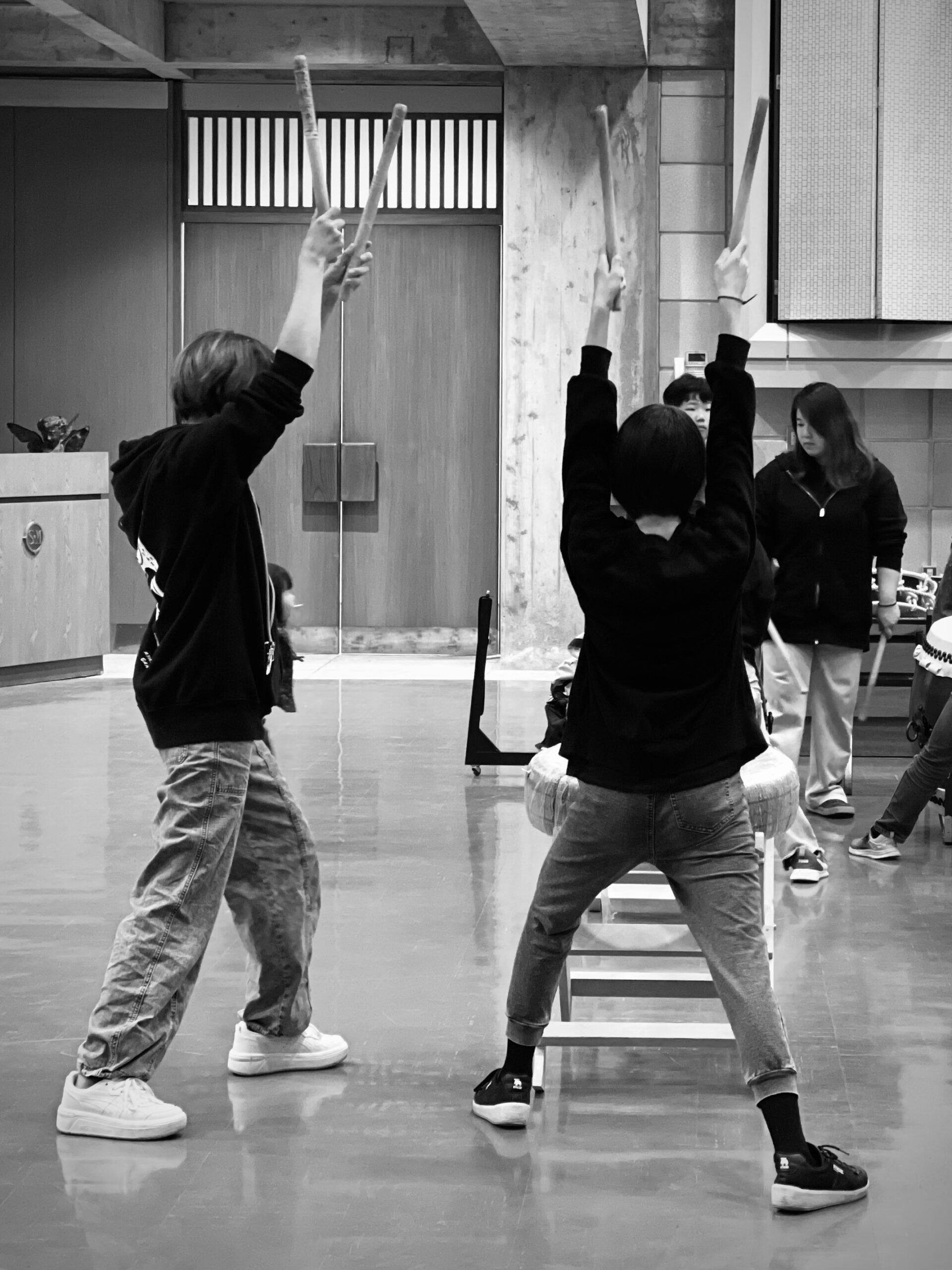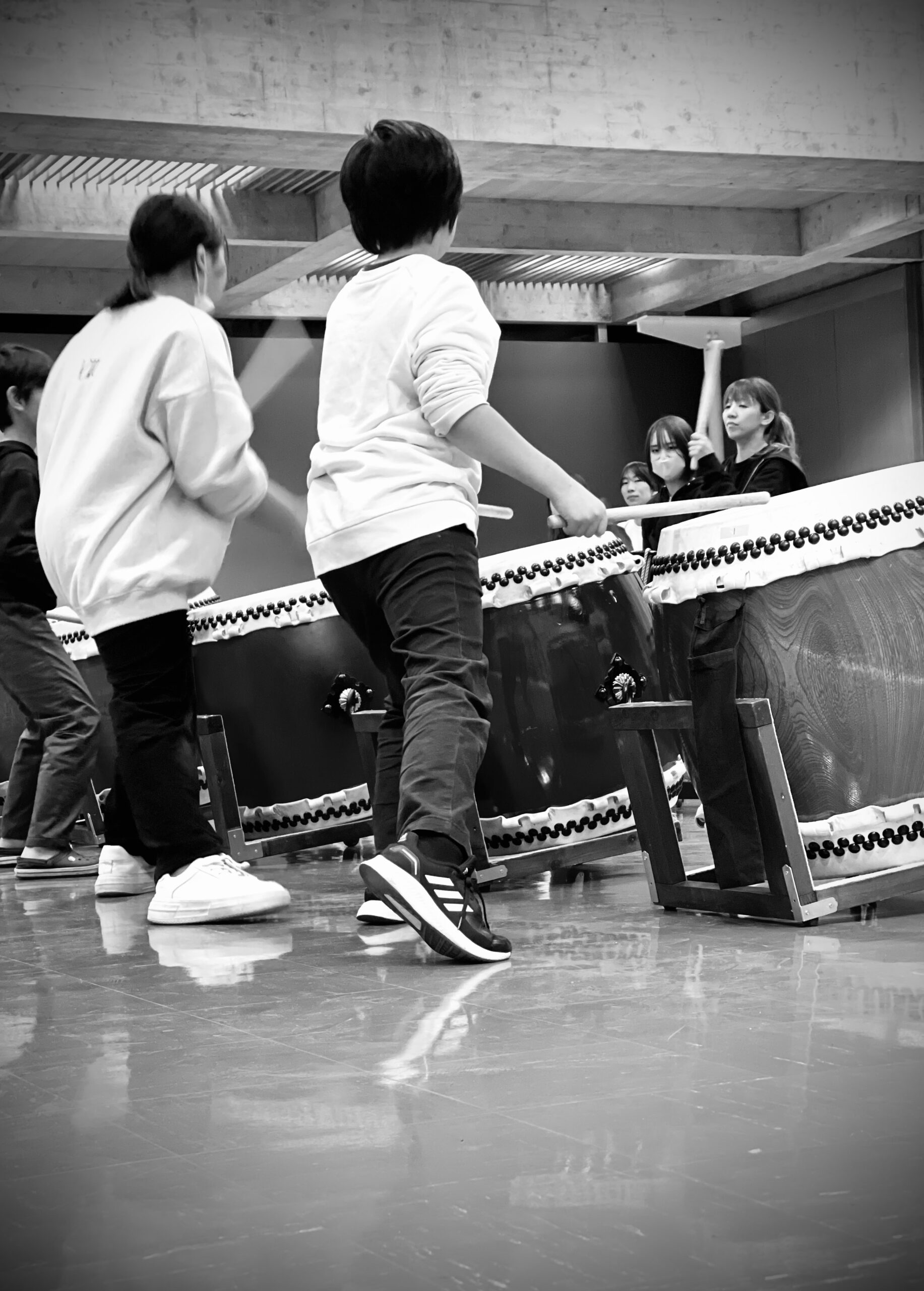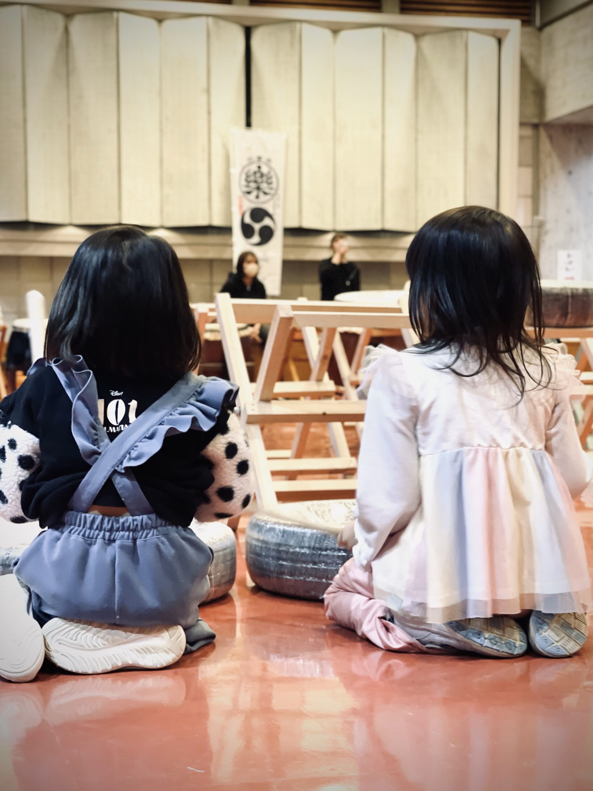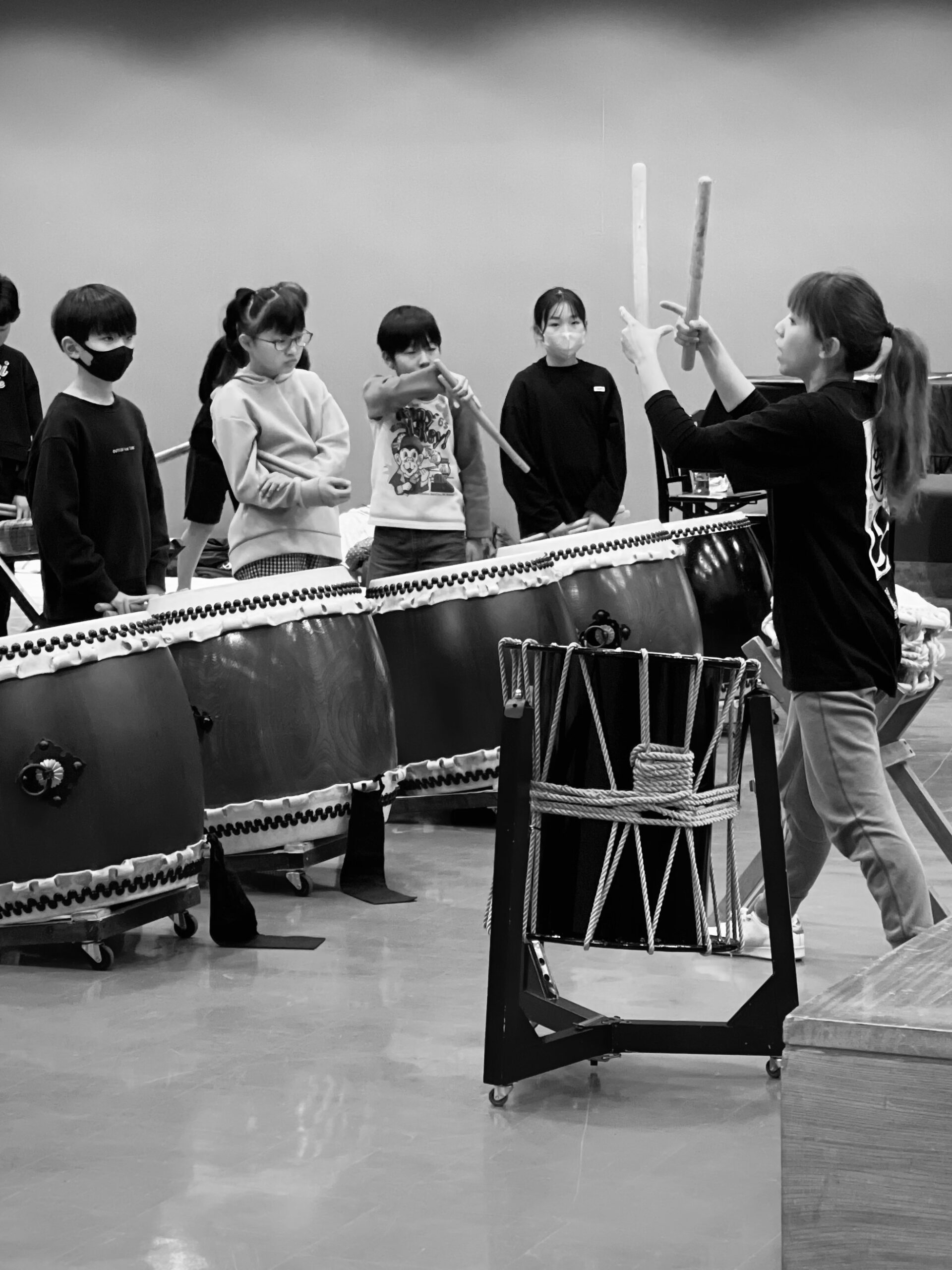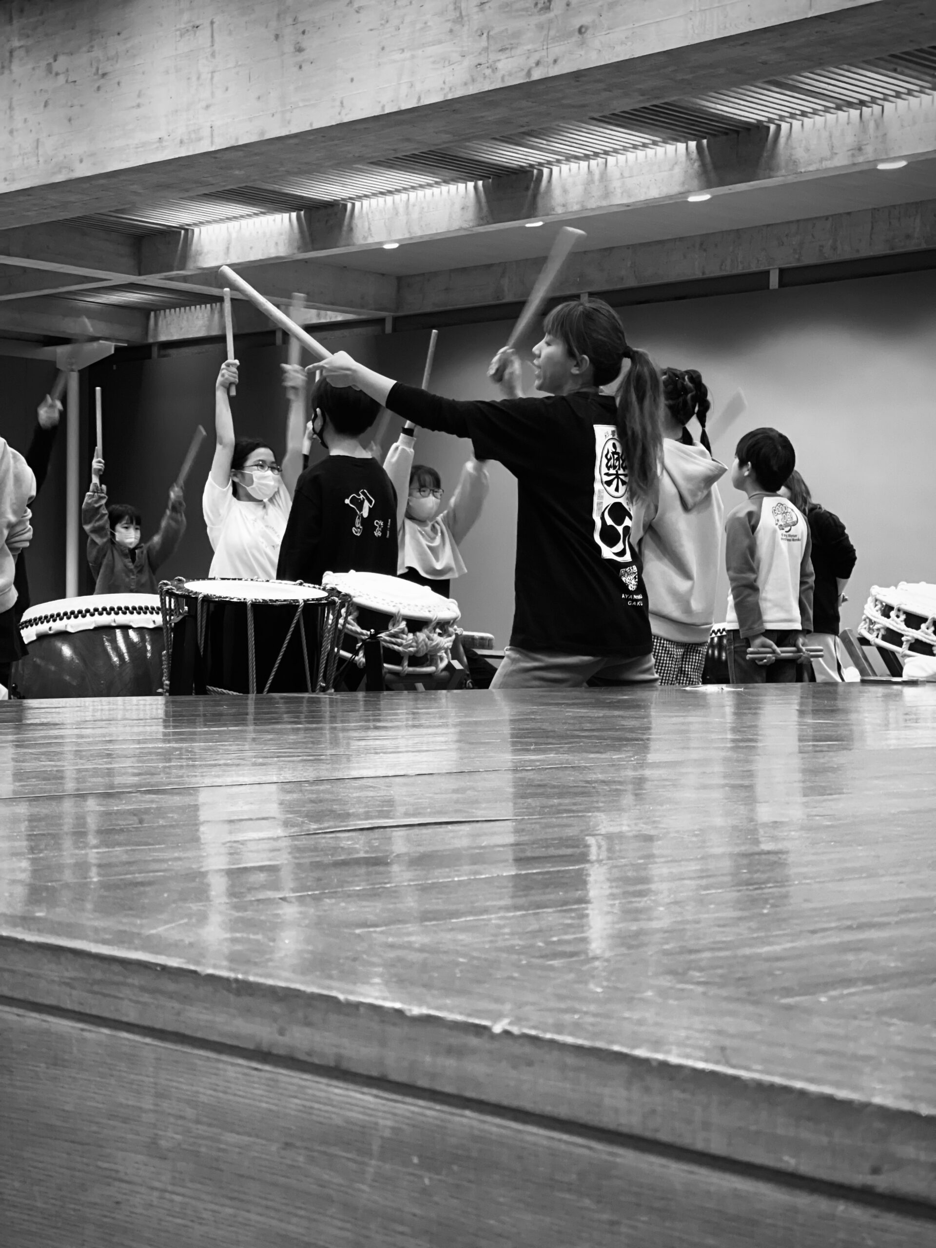 ママの練習が終わるのを、太鼓のバチを手に、練習の真似をしながら待っている子供たちの姿も微笑ましい。
