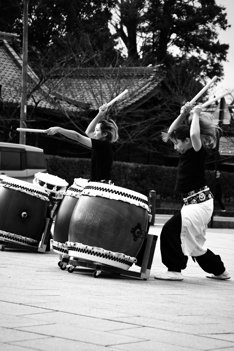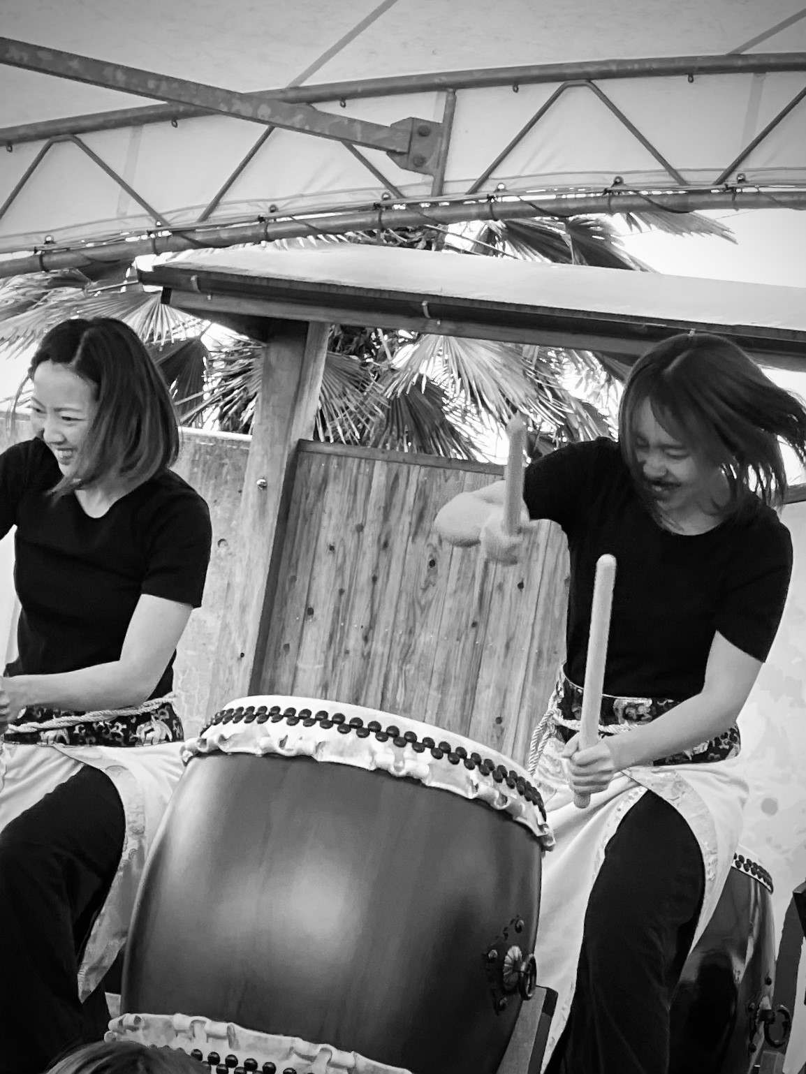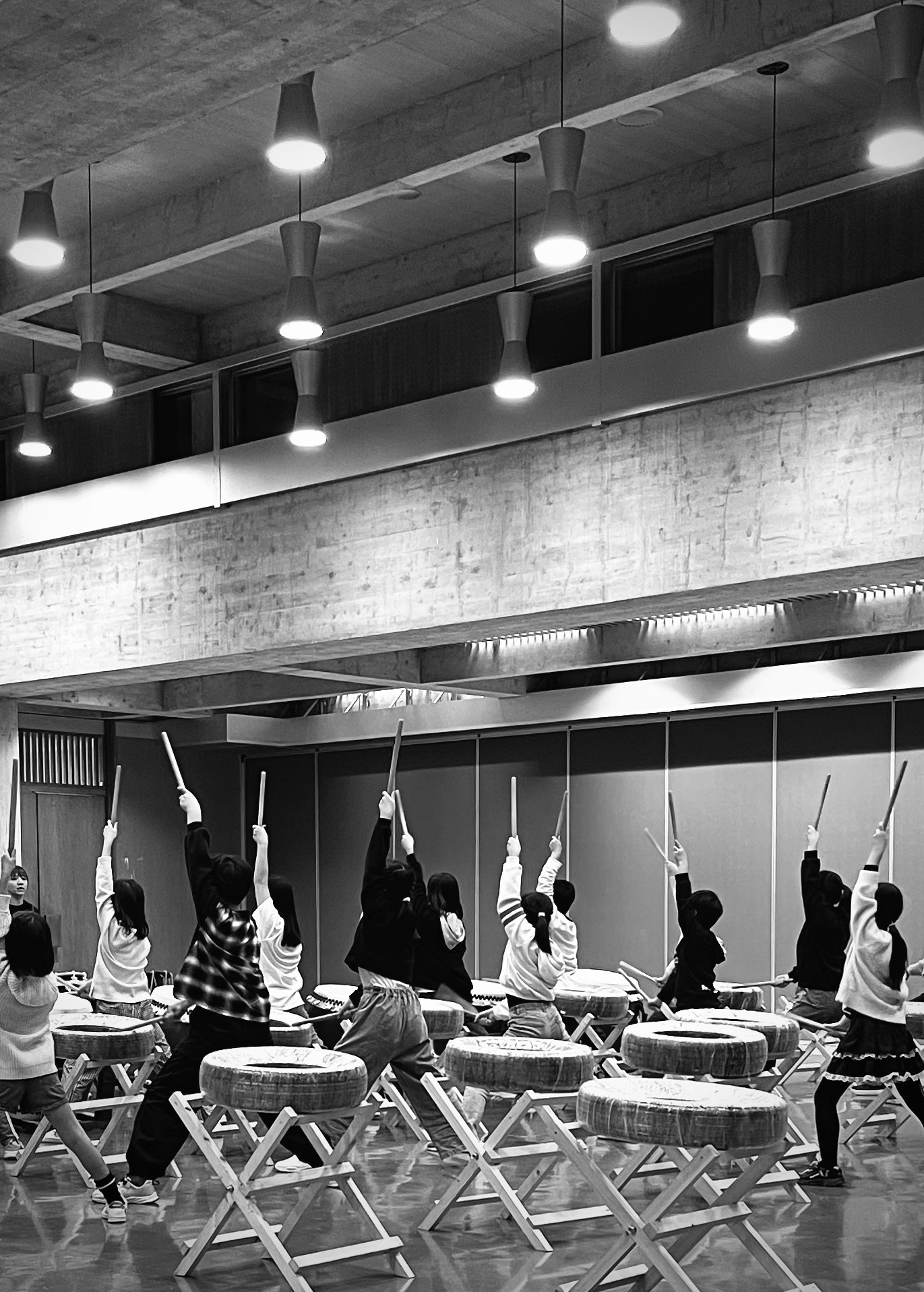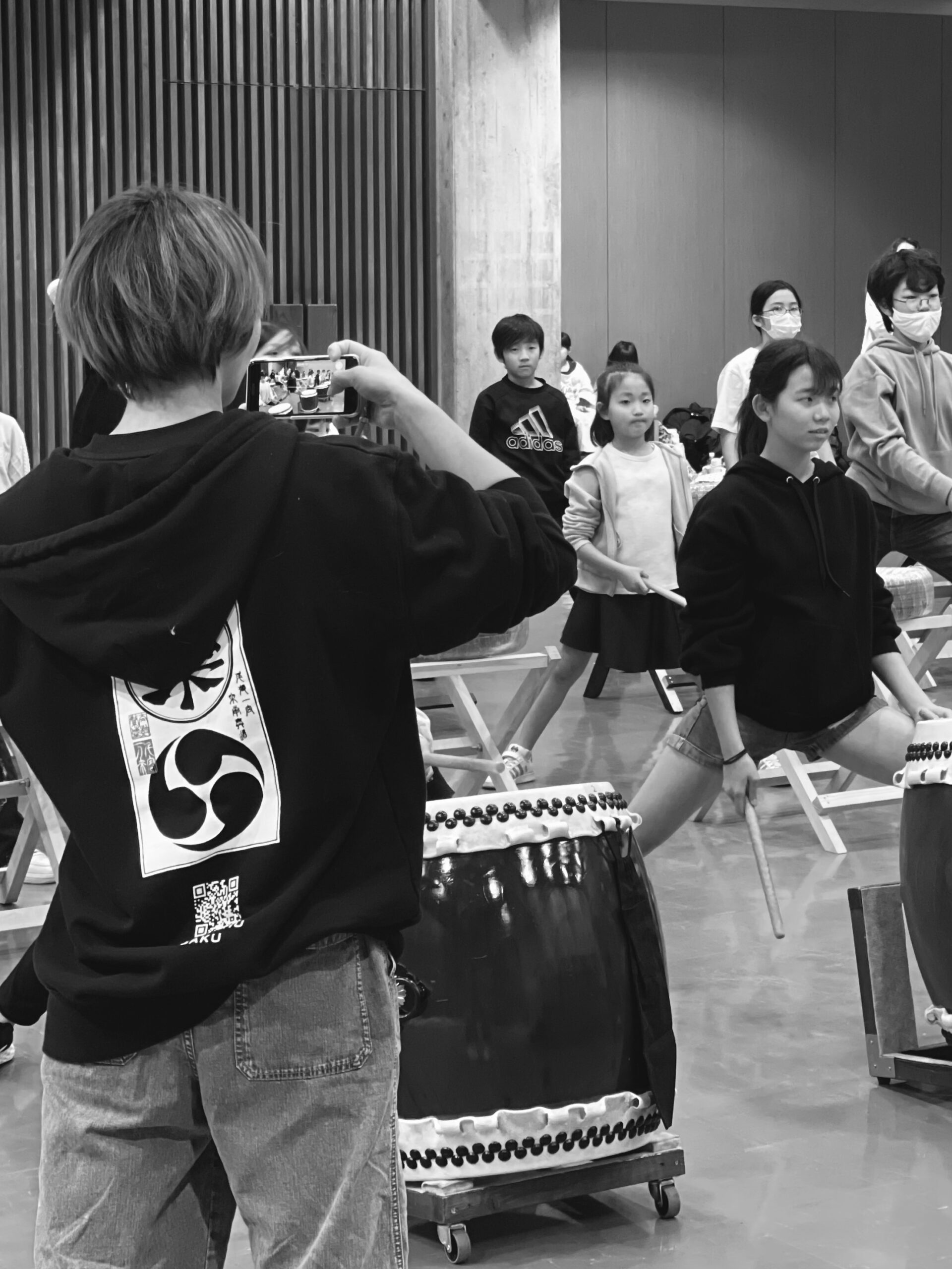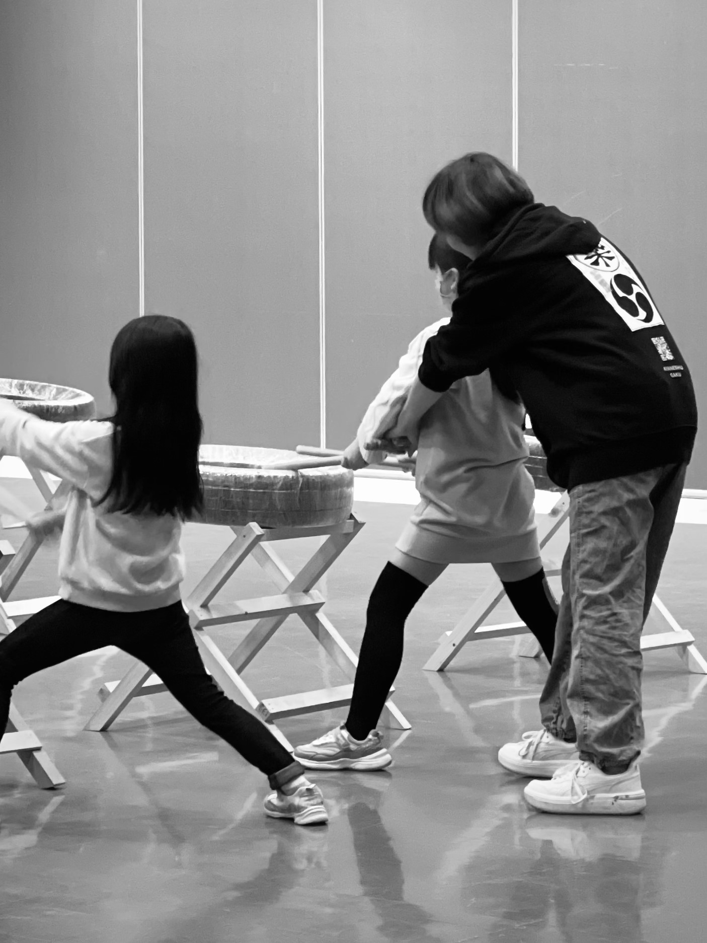 ママの練習が終わるのを、太鼓のバチを手に、練習の真似をしながら待っている子供たちの姿も微笑ましい。