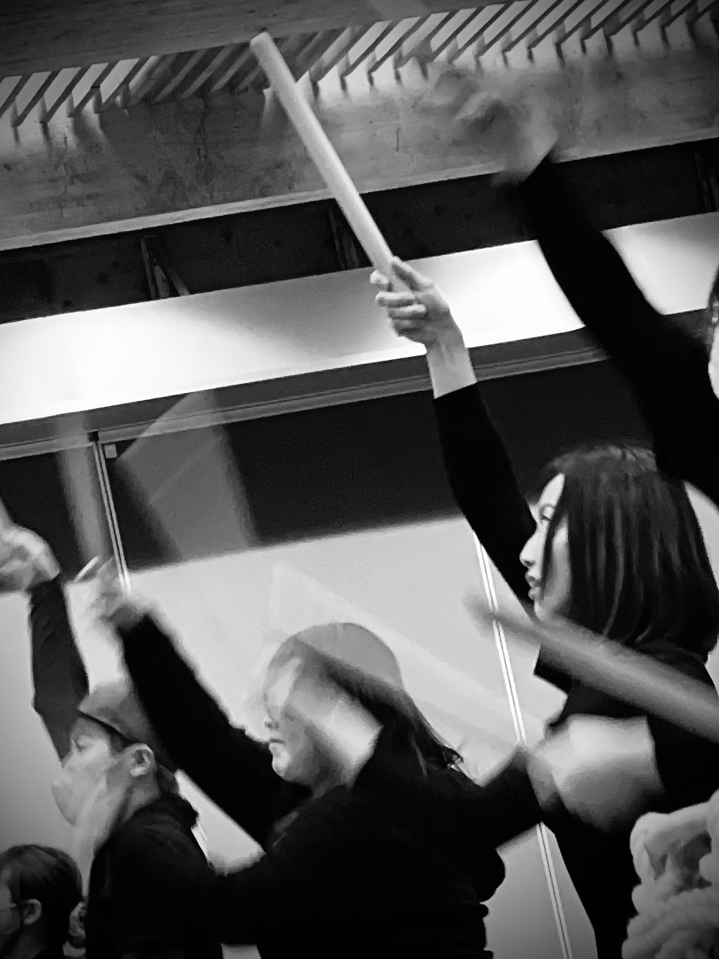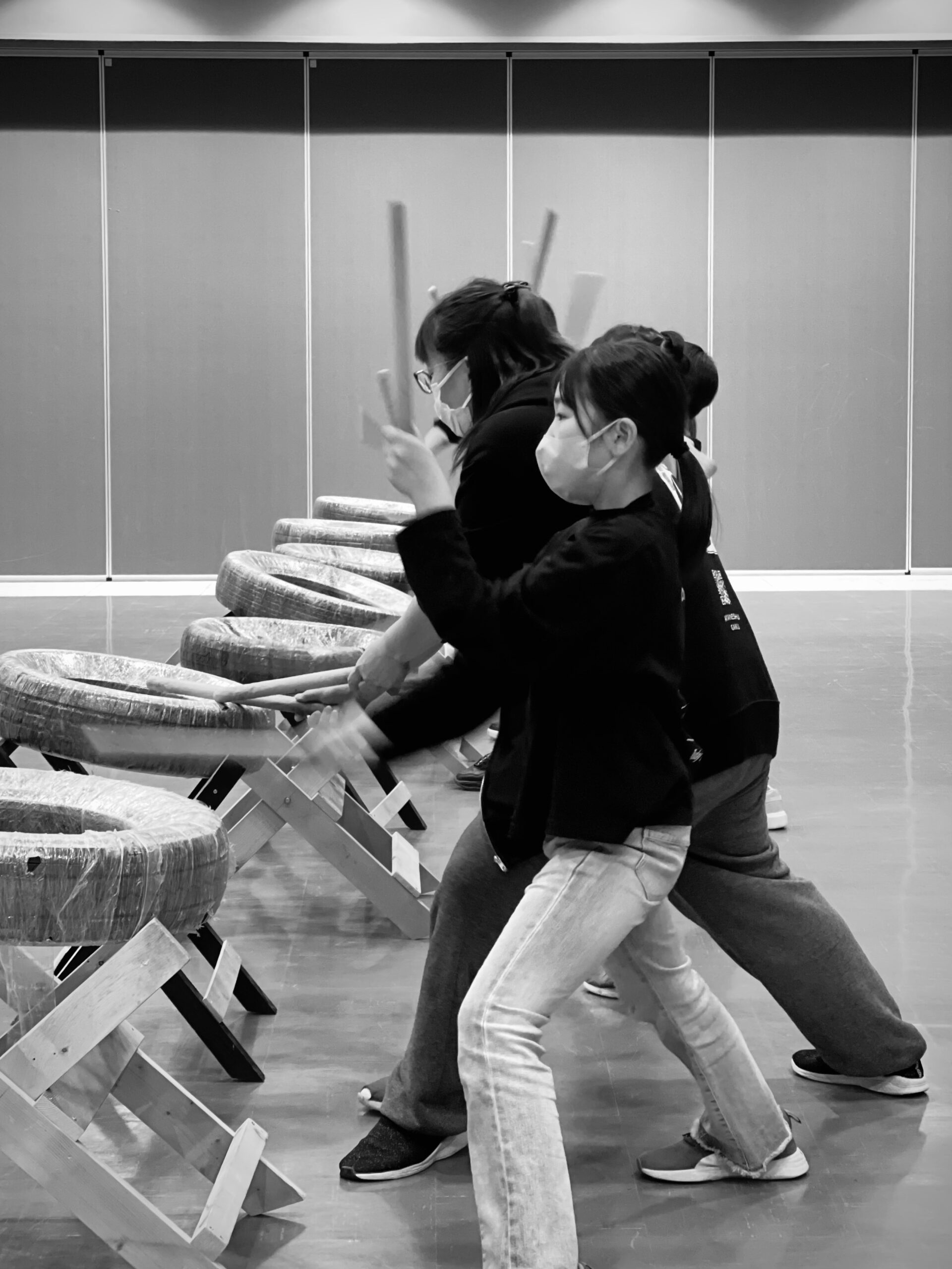 体験会では、樂のメンバーと一緒に太鼓を思いっきり鳴らしたり、みんなでせーので音を揃えて鳴らしたり、ワクワクする時間を楽しみましょう。バチを握った姿でぜひ一緒に写真を撮ってください♪