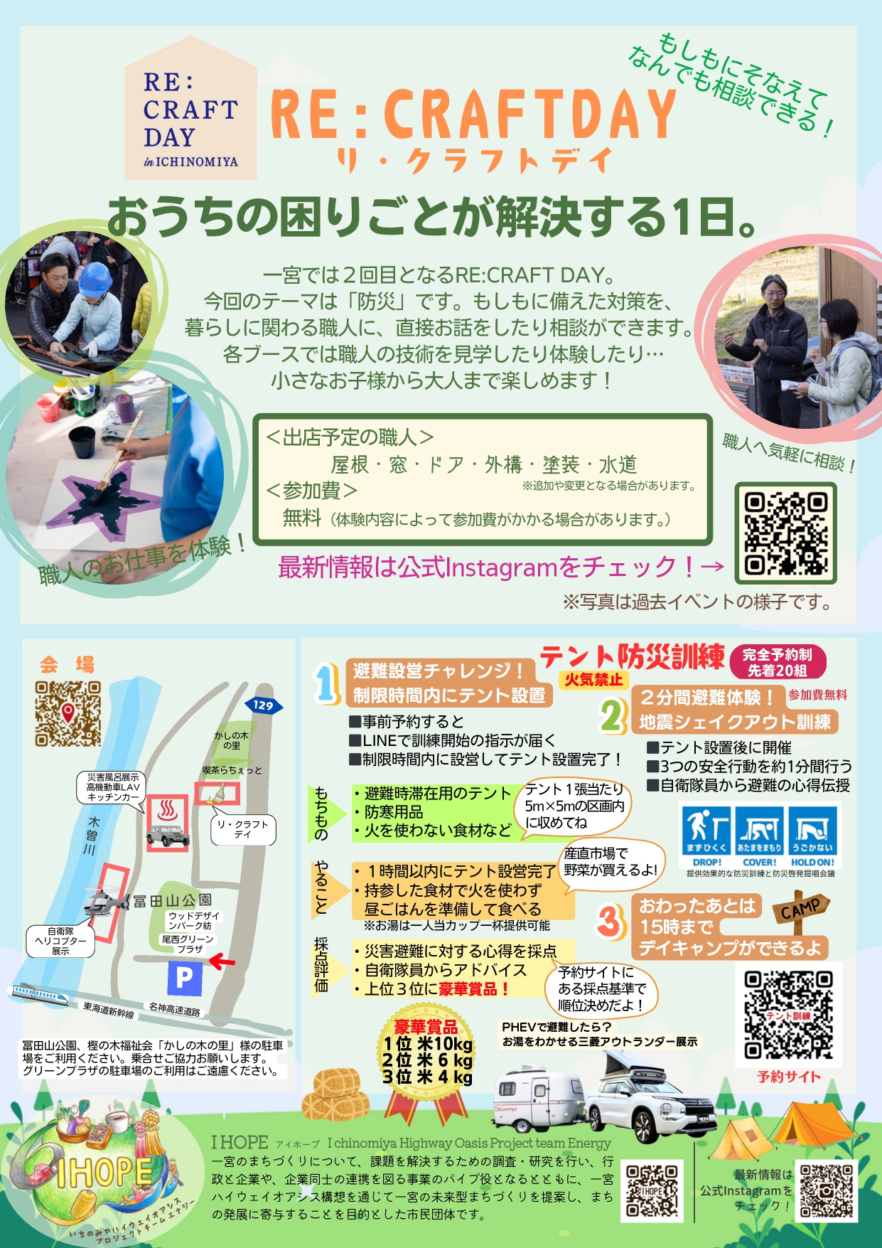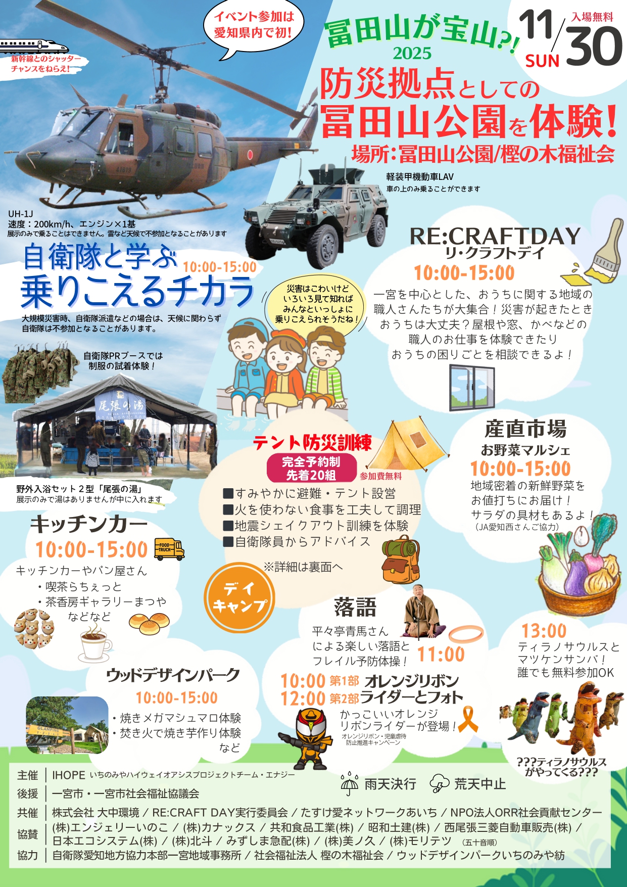 他にも地元の建築職人さんの楽しい体験イベントリ・クラフトデイも同時開催。キッチンカーや落語、オレンジリボンライダーも登場します!