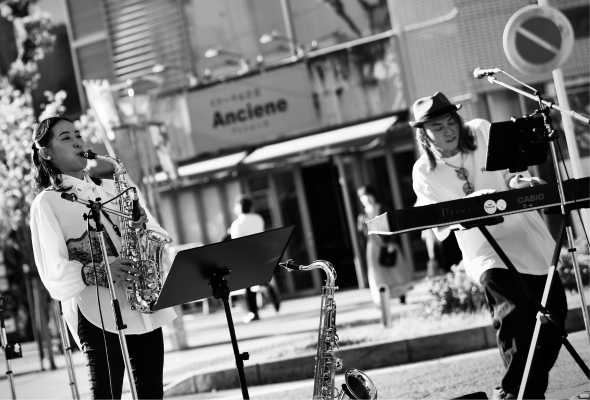▼ Duo Marroon(デュオ マローン) サクソフォン:袴田美帆 キーボード:犬飼裕哉