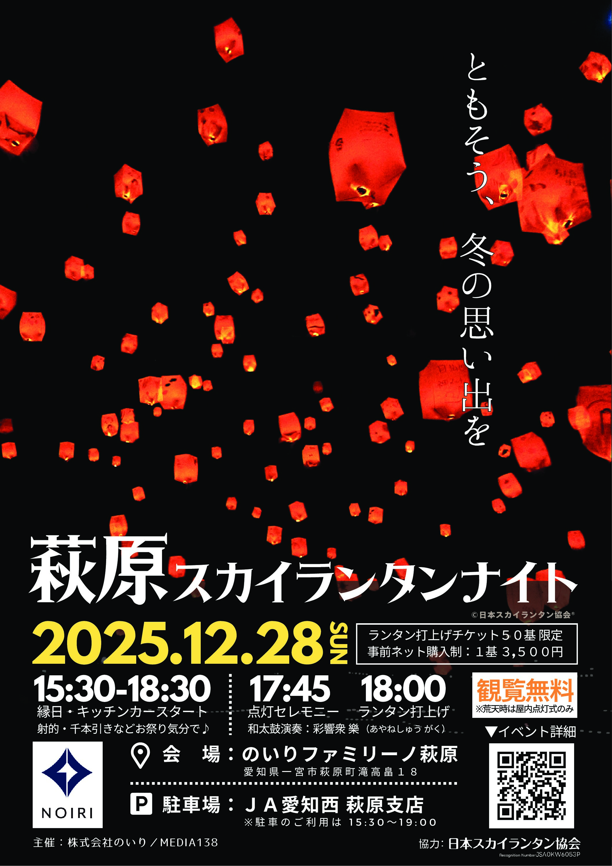 スカイランタン1個につき、最大4名様までご入場、打上げに参加いただけます。