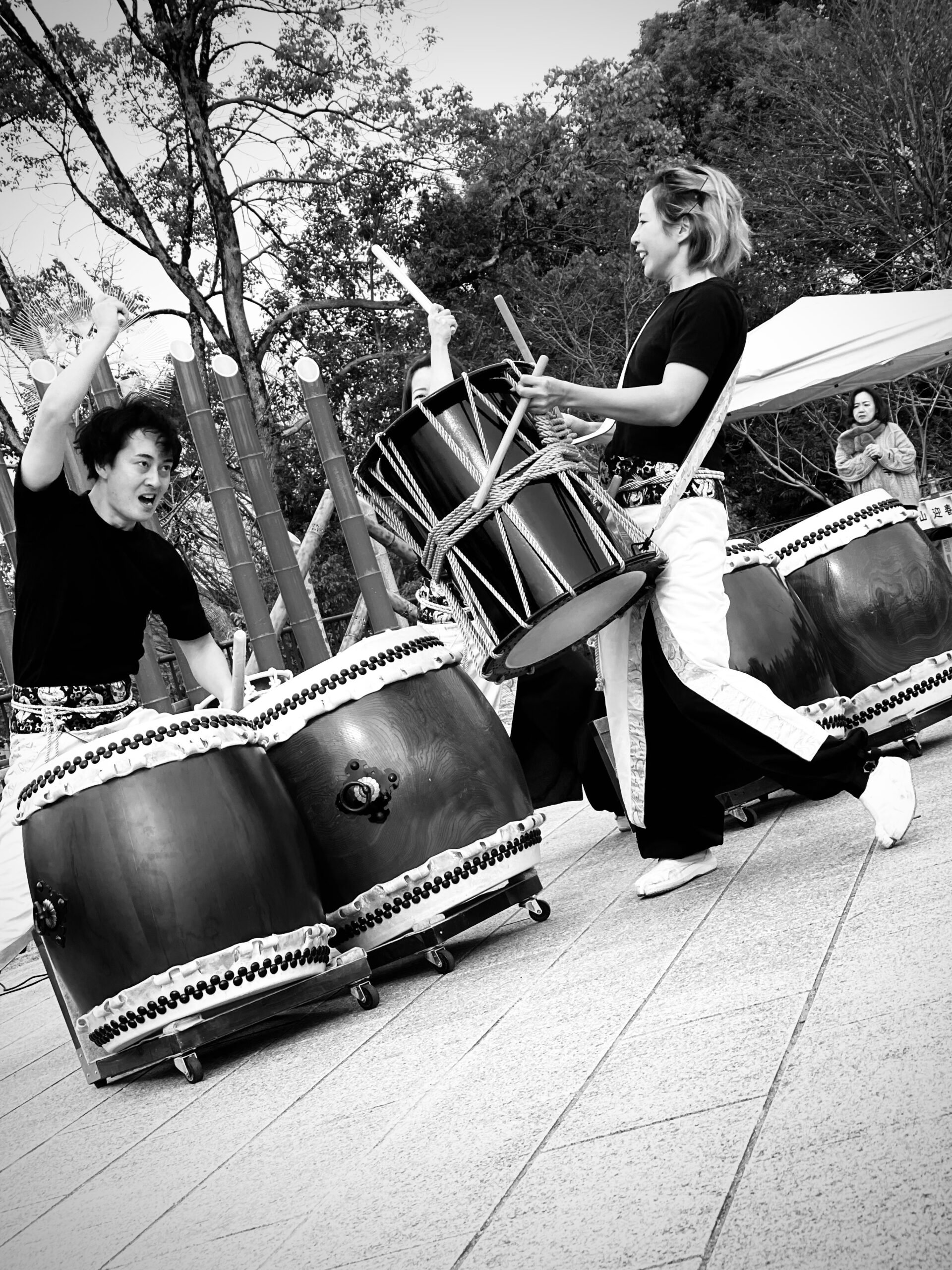 ママの練習が終わるのを、太鼓のバチを手に練習の真似をしながら待っている子供たちの姿も微笑ましい。